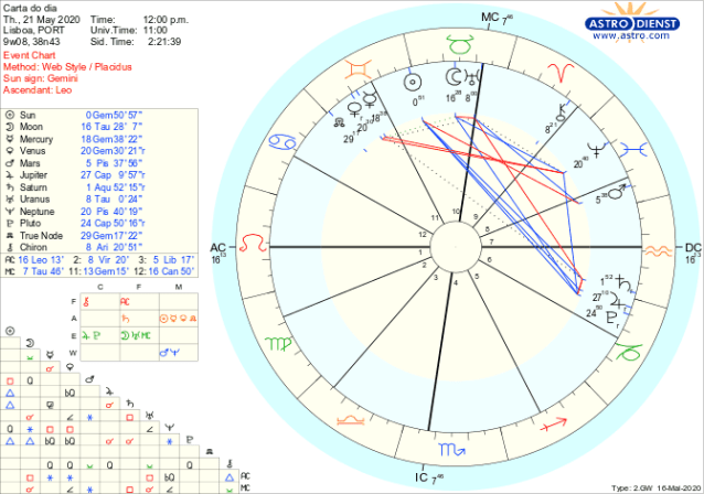 Esta seriedade e esforço de materialização vem também da urgência de estar pronto para abrir amanhã, na Lua Nova de Gémeos, um novo capítulo nas áreas da comunicação, informação, comércio, trocas, aprendizagens, o discernimento impõe-se. Com Sol, Mercúrio, Vénus retrógrada e o Nódulo Norte em Gémeos não há lugar para emoções. O uso da razão, a análise lógica,o estudo de probabilidades é o caminho que não será híbrido se nos apoiarmos nos conhecimentos mais profundos, saberes antigos ou verdades universais de onde virá a inspiração a integrar, oriunda do Nódulo Sul ou Cauda do Dragão agora em Sagitário.