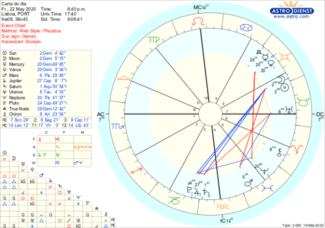 signo. Vénus retrógrada, Mercúrio e o Nódulo Norte partilham dessa energia dual e dá-se uma multiplicação de informações, trocas, olhares e interesses que apenas se conseguem estruturar porque Saturno em Aquário faz trígono à Lua/ Sol e como força exterior diz-nos o que é possível ou não.. Tudo são caminhos que temos de afinar sujeitando-nos a regras colectivas mas mesmo obedecer é difícil porque a Lua, horas depois, faz quadratura a Marte em Peixes e os gestos podem ser confusos ou contra o nosso interesse próprio.