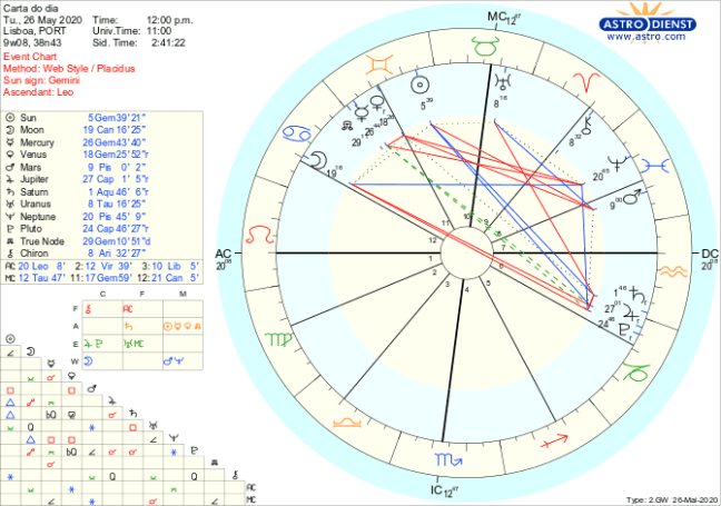É claro que, com a Lua em Caranguejo em trígono a Neptuno, tudo o que sentimos sentimos mais e os sentimentos ou intuição podem mesmo dominar todos os processos do dia com a tentação de deixar para amanhã todas as dificuldades que surgirem na área do financeiro, da organização, da gestão de poderes. Mas é melhor confrontar as obrigações quando elas surgirem e ganhar tempo aproveitando a suavidade dos aspectos da Lua para minimizar choques ou mesmo para nos inspirar a como os resolver. Aprofundar a informação que recebemos ou divulgamos é chave, com Mercúrio em quincúncio a Plutão. Não é dia para futilidades apesar da ligeireza que suscitam Sol, Vénus Mercúrio e o Nódulo Norte e Gémeos.