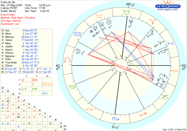 Mais do que seguir o impulso devemos hoje seguir uma lógica de comunicação e de diálogo sobre tudo o que estiver pendente na mesa, incluindo também nesse debate o drama que sentimos com limites, responsabilidades e o desejo de fuga. A Lua em sextil ao Sol em Gémeos e a presença em Gémeos de Vénus, Mercúrio e o Nódulo Norte reforçam neste período a inportância de estar bem informado, rever conceitos e debater opções.
