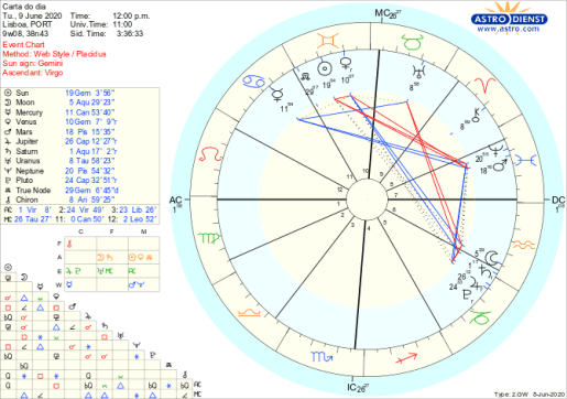 Júpiter conjunto a Plutão em Capricórnio até ao fim do mês insta ao uso de amplos poderes e à criação de grandes fundos financeiros para garantir o funcionamento das estruturas políticas. A distribuição desses fundos pelo colectivo depende de Saturno em Aquário -o que representa uma gestão conservadora, cuidadosa e limitada – e do quincúncio ao Sol e ao Nódulo Norte em Gémeos- que sublinha a importância do pequeno comércio, movimentações locais , intercâmbios de vizinhança e uma informação inteligente que pode no entanto sofrer de falta de clareza devido à quadratura do Sol a Marte e Neptuno em Peixes.