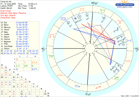 São trânsitos com grande potencial de realização de sonhos e de transcendência das restrições que limitam a concretização de algo maior. Mas também são trânsitos em que o lado de vitima/passiva/agressiva pode dominar a vontade, convencidos que isso é que o certo ou bom, apesar de difícil de explicar, dadas as quadraturas ao Sol e Nódulo Norte em Gémeos.