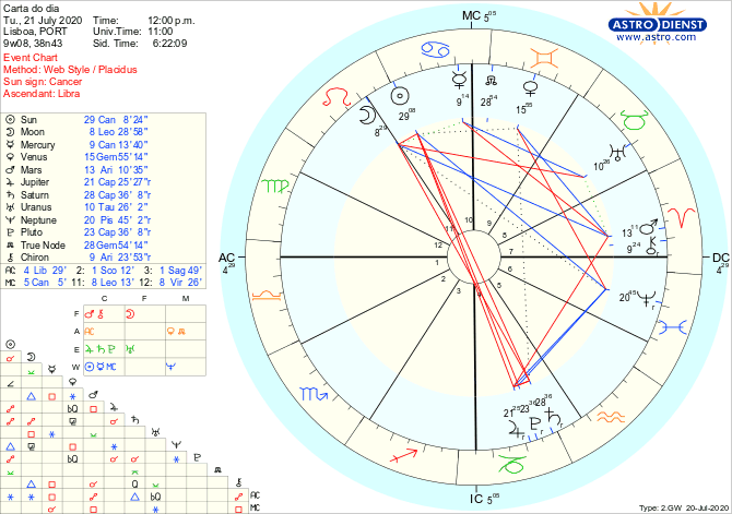 De facto, percebemos já hoje os limites de actuação dessa força pessoal se não houver consideração ou assimilação de novos valores que sirvam não só o interesse próprio mas também o colectivo. A Lua faz trígono a Marte em Carneiro o que nos enche de Fogo para exercer a vontade, tal como a projectamos, mas em simultâneo faz quadratura a Urano em Touro o que é um choque ou tensão de ruptura caso estejamos a agir segundo velhos impulsos do Ego sem incorporar o que está a mudar, tem de mudar e é ilustrado pelos novos valores sociais anunciados por Urano, regente do Aquário, em trânsito em Touro. Outro aspecto que reforça a importância de pensar de uma forma diferente o que nos poderá dar segurança, é o sextil de Mercúrio em Caranguejo a Urano em Touro e a sua quadratura a Quíron e Marte em Carneiro, que dura toda a semana: a solução não está na força ou teimosia mas sim nas oportunidades de mudar velhos hábitos, dependências, valores de referência…