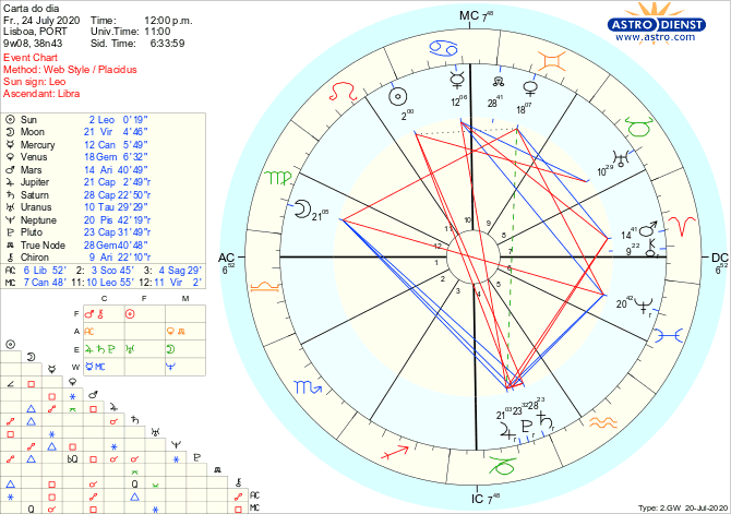 Mas a Lua em Virgem faz também quadratura ao Nódulo Norte em Gémeos, ambos regidos por Mercúrio, agora em trânsito em Caranguejo, em recepção mútua com a Lua. Uma quadratura é sempre uma tensão que vivemos internamente, neste caso, entre a pulsão de controlar os pormenores e nos dedicarmos metodologicamente às tarefas em mãos, em casa, no trabalho, na saúde e a consciência de que o futuro pode não ter uma só direcção. Sendo assim, qual a orientação a seguir??? Podemos procurar resposta a esta quadratura da Lua aos Nódulos, em Mercúrio e nos seus aspectos de sextil a Urano em Touro e quadratura a Marte em Carneiro. Com Mercúrio em Caranguejo a lógica do passado tende a influenciar o raciocínio sobre o presente e a intuição tende por fim a sobrepor-se a qualquer lógica. Conseguir alinhar mente e emoções é o primeiro passo para resolver as tensões. O segundo é ser capaz de exprimir dúvidas sem que isso ameace a estabilidade íntima nem represente uma ameaça para quem nos ouvir. É um dia com trabalhos de casa interiores e de organização exterior…