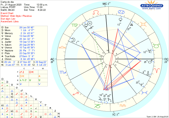 As nossas relações são ou não justas e equilibradas? Recebo na medida do que dou? E em casa, em família, estou em esforço ou já faço as coisas de uma forma diferente, a corrigir desequilibrios? Sonho com a intimidade perfeita, meço os pesos da balança e tento resolver a tensão entre quem sou e os limites que me são impostos. É através do diálogo inteligente e sem evitar os detalhes que pode haver progresso. Isto pode ser o cenário de hoje com a Lua em Balança e Vénus seu regente em Caranguejo, a avançar para um trigono a Neptuno em Peixes, e em sextil a Urano em Touro. Estes aspectos fazem-nos querer evitar conflitos mas não deixamos de estar conscientes do que estamos a ganhar ou a perder nas relações, em particular nas do foro familiar que idealizamos perfeito, mas que não o é e pode ser mudado. Podemos levar tudo demasiado a peito com o Sol em Leão mas o seu quincúncio a Saturno obrigados controlar orgulho e a respeitar regras. O Nódulo Norte em Gémeos e Mercúrio seu regente em Virgem aconselham a fazer bem as contas, analisar os dados e comunicar sem recorrer nem ir atrás das emoções. A frieza hoje é boa conselheira.