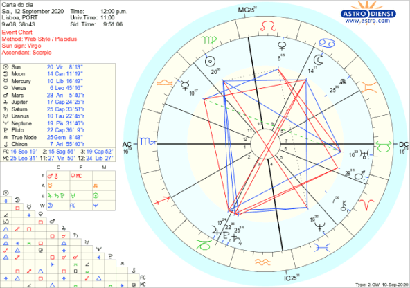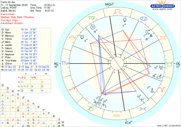 Resolvida essa tensão, podemos apanhar a boleia de Júpiter que entra directo também no domingo, fechando a retrogradação em Capricórnio desde meados de Maio. Isto é importante por si mesmo mas também porque faz parte do pacote de mudanças de direcção que ocorrem daqui até ao início de Outubro, todas em Capricórnio, pelos planetas que pela sua conjunção no início do ano lançaram o mundo numa revolução e constrangimento sem precedentes nesta escala global. Saturno e Plutão fizeram conjunção em Janeiro, Júpiter exacerbou o seu impacto fazendo-lhes também conjunção em Março. Em finais de Abril, Plutão entrou retrógrado, seguido de Saturno e Júpiter retrógrados em meados de Maio. É fácil recordar a explosão da pandemia em Março, os limites e restrições impostos com Saturno a entrar em Aquário em Março e aliviar gradual das restrições entre finais de Abril e meados de Maio. Esses três planetas retrógrados desde a Primavera vão ficar todos directos até 5 de Outubro. Júpiter fica directo dia 13 de Setembro, Saturno dia 30 de Setembro e Plutão no início de Outubro.