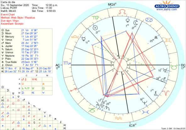 A experiência da Primavera vai ser fundamental para determinar as regras, limites e transformações estruturais que temos de fazer agora. Até ao final do ano, Júpiter vai fazer novas conjunções a Plutão e Saturno que, apesar de não voltarem a encontrar-se em grau exacto, continuam em órbita de conjunção. A correção de situações e a sustentabilidade do desenvolvimento são o mote destes aspectos e como indivíduos ou como sociedade não temos outra escolha melhor. O caminho abre-se no domingo depois de largarmos mais umas amarras do passado com a oposição da Lua aos planetas em Capricórnio e a entrada de Jupiter directo e segunda feira 14 tudo parece fluir melhor e conseguimos já progressos nesses preparativos com o Sol em trígono a Plutão e a Lua em Leão em sextil a Mercúrio em Balança.