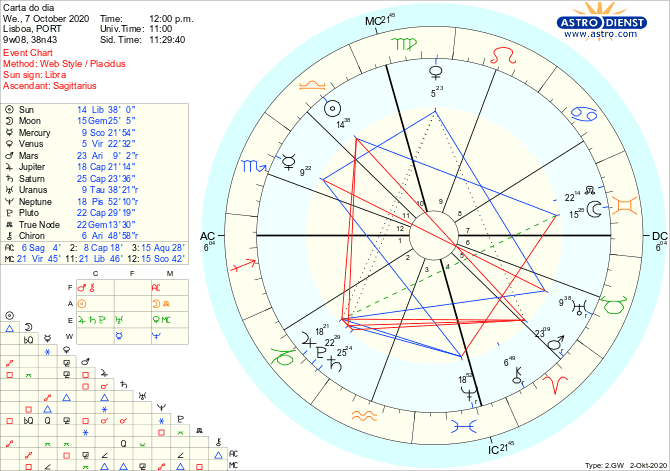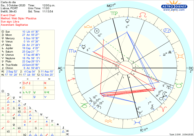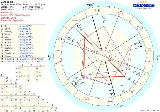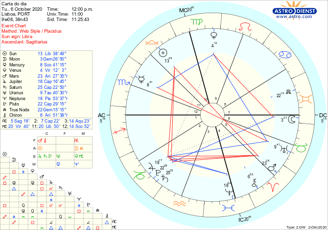 O que nos deve guiar? O sentido da Verdade por muito vago ou dúvidoso que isto possa parecer. O Nódulo Lunar Sul ou Cauda do Dragão em Sagitário e o Norte ou Cabeça do Dragão em Gémeos, respectivamente regidos por Júpiter em Capricórnio e Mercúrio em Escorpião são os grandes impulsionadores do sentido do destino. Em tempos de “fake news” e grande falta de clareza sobre números, tratamentos, responsabilidades e interesses, assistimos de facto às Verdades do Sagitário a desdobrarem-se na ambiguidade dos Gémeos. Que fazer? Re-aprender se necessário a pensar por nós próprios, abertos ao que não conhecemos, flexíveis para mudar de rumo se necessário e justificável porque acreditamos ser esse o caminho certo para nós próprios, mesmo se o do vizinho for outro…