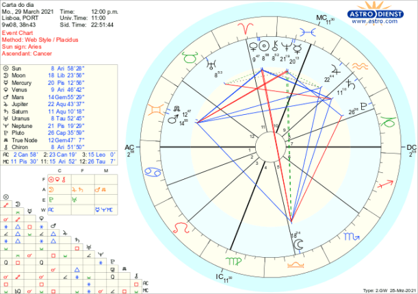 Nesta semana, vamos da Lua Cheia em Balança de domingo 28 de Março ao quarto minguante em Capricórnio no próximo domingo 4 de Abril. Este movimento de aproximação da Lua ao Sol, cada vez mais ofuscada pela sua Luz – até que renasça em Lua Nova a 12 de Abril- é o tempo de terminar assuntos em curso, repensar amarras emocionais e respostas instintivas e prepararmo-nos para um nova atitude em que o querer e o sentir estejam alinhados e prontos a abrir um novo ciclo emocional quando a Lua e o Sol fizerem conjunção a 22 graus de Carneiro.