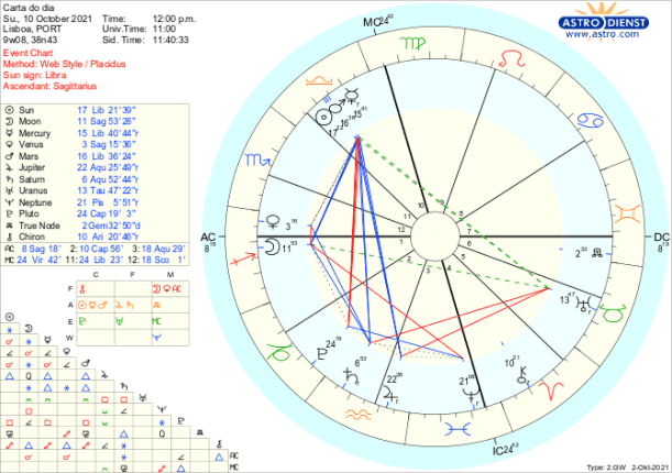 No fim-de- semana, a 9 e 10, tudo se suaviza porque é no espírito, na leitura, estudo, viagem, abertura de horizontes que encontramos os equilíbrios desejados. Vénus e Lua em sextil a Saturno e d seguida a Lua em sextil a Júpiter sempre em sextis aos planetas em Balança, colocam sensibilidade e empenho na busca de soluções maiores que enquadrem o nosso propósito de vida.