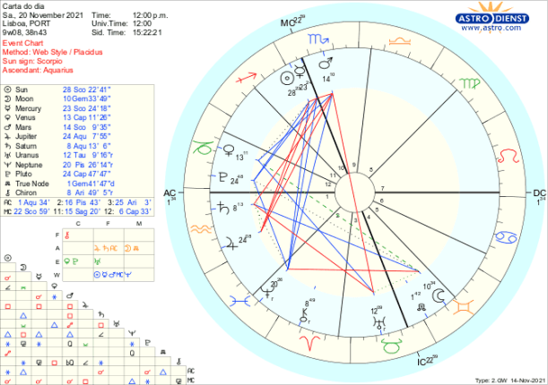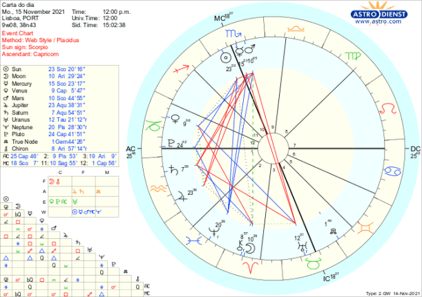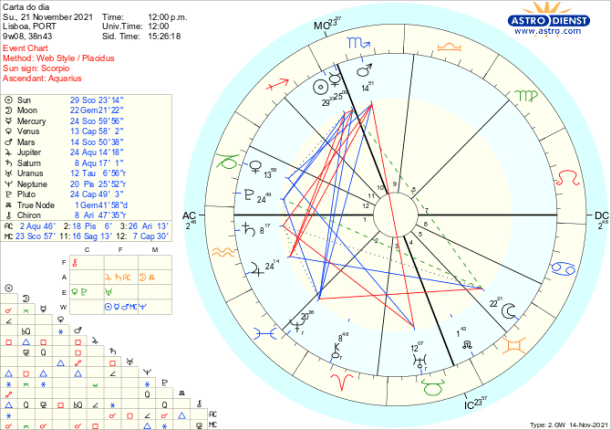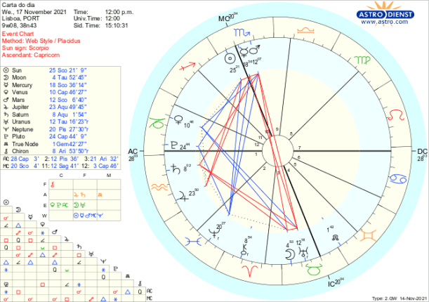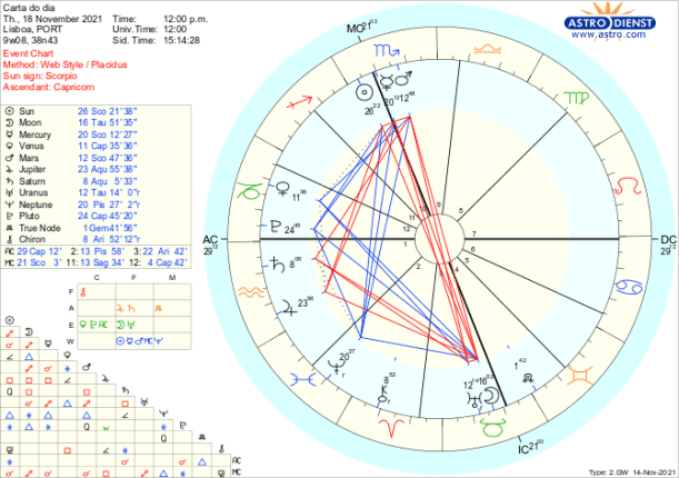 É bom lembrar que esta Lua Cheia regida por Vénus nasceu de uma Lua Nova em Escorpião, regida por Marte, no passado dia 4, oposta a Urano, lançando sementes de mudança, de forma radical. O que acontece esta semana, no dia 17, que tem relação directa com os eventos da Lua Nova, vai ser a passagem de Marte no grau em que ocorreu a Lua Nova e uma conjunção da Lua a Urano. Passamos assim a uma fase ainda mais radical, impelidos a agir para incorporar novas realidades sejam elas emocionais, domésticas ou nacionais. É preciso pesar bem os gestos e impactos, apesar da ansiedade ou turbulência de sentimentos e mesmo ressentimentos que possam prolongar-se vindos das quadraturas, na segunda feira 15, do Sol a Júpiter e de Vénus a Quíron e à Lua.