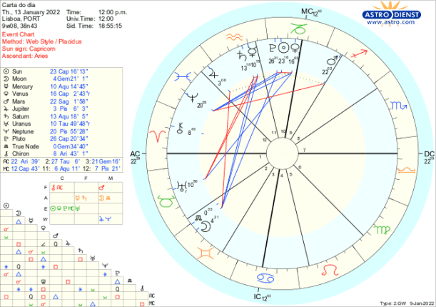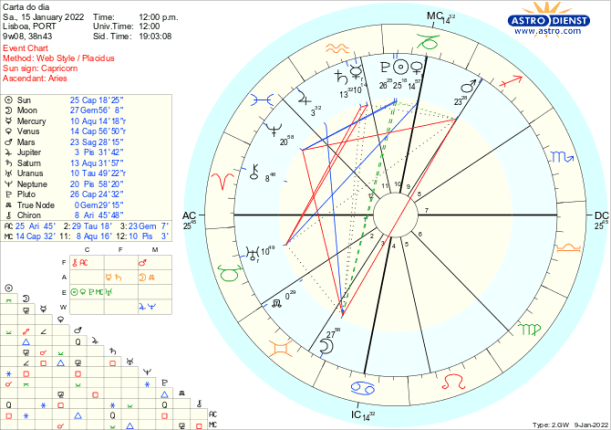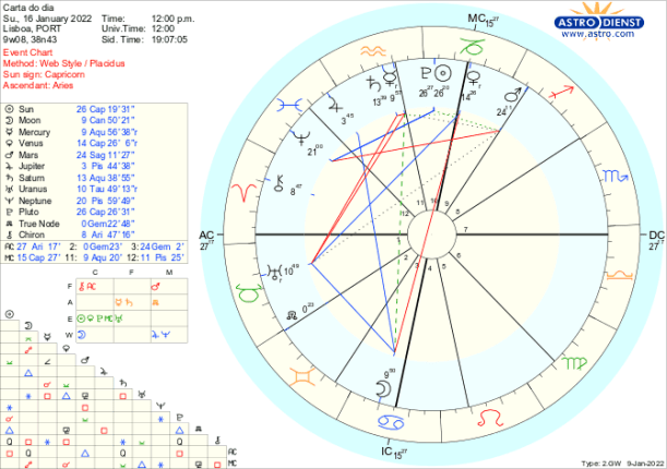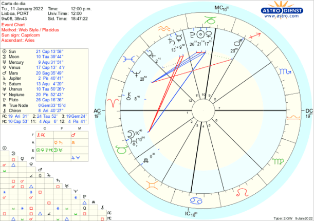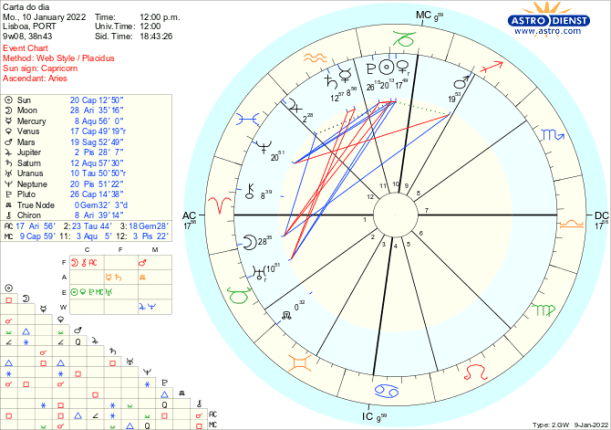 Em Capricórnio, signo da ordem, estrutura, organização, estão Vénus, o Sol e Plutão, sendo que Vénus retrógrada acaba de fazer conjunção ao Sol, a Lua em Carneiro depois de uma conjunção a Quíron faz quadratura a Plutão na segunda feira e Marte em Sagitário uma quadratura a Neptuno. A semana começa assim com a consciência de que as relações pessoais, políticas ou financeiras têm de ser clarificadas à luz dessa nova compreensão do que é agora correcto o que implica gerarmos novas estruturas, criarmos uma nova ordem, partirmos para outra organização na qual as relações terão de ter novas regras. Isto é difícil porque a capacidade de agir está demasiado tingida por ideais e falta à partida o pragmatismo necessário para gerir os processos com fluidez. Estes aspectos perduram toda a semana e culminam domingo e segunda com a conjunção do Sol a Plutão com a Lua Cheia a opor-se-lhes a partir do Caranguejo.