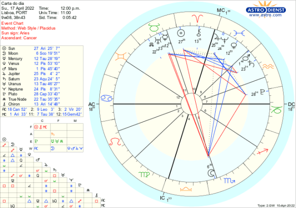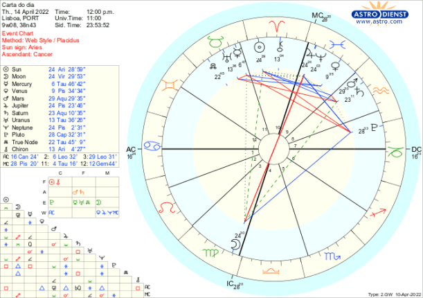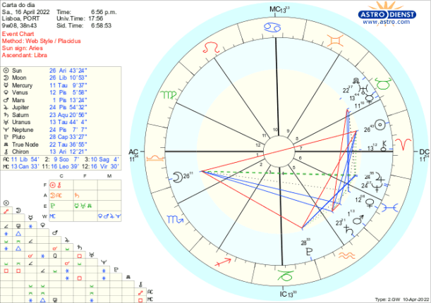 No Sol em Carneiro manda Marte que toda a semana, até à Lua Cheia percorre os últimos graus do Aquário, sob a influência de Saturno que aí se encontra impondo restrições e responsabilidades colectivas, num ambiente de aceleração e travão causador de imensa tensão, tensão essa que é repercutida pelo Sol. A Lua vai do Leão até à Balança no dia 16, numa sequência de tensões cujos maiores impacto serão na segunda feira em que faz quadratura a Urano e oposição a Saturno; terça em que continua a oposição em em Saturno e se acrescenta a oposição a Marte, na quinta faz quincúncios ao Sol e Saturno; na sexta sesquiquadrada – efeito bloqueador o a Saturno; no sábado, já em Balança, está sesquiquadrada – a Vénus que rege a Balança e em quadratura a Plutão, em oposição ao Sol. São emoções permanentemente abaladas pelas circunstâncias, com pouco descanso, as que a Lua nos promete esta semana. Apenas quarta feira há ligeiro alívio, com a Lua em Virgem, cuidadosa na análise, deita contas ao que valorizar e que novos rumos tomar, ao fazer uma sucessão de trígonos a Mercúrio, Urano e Nódulo Norte em Touro.