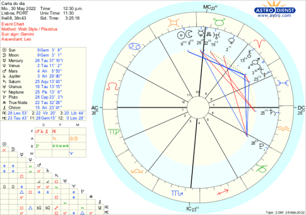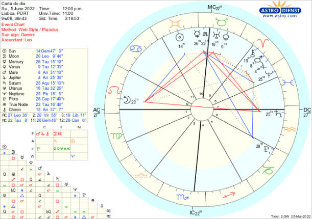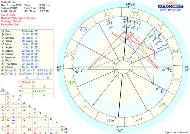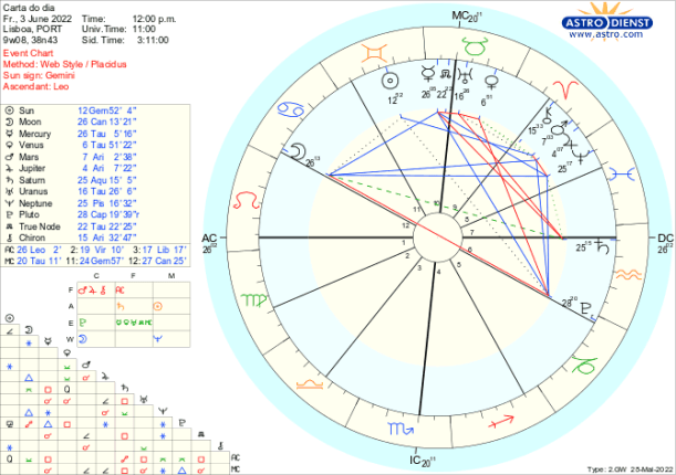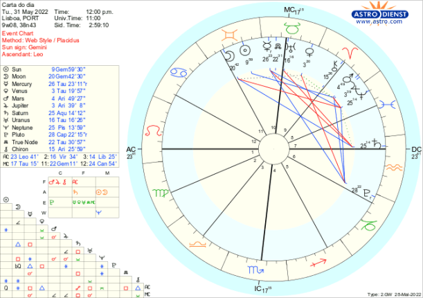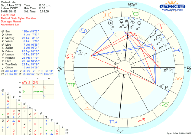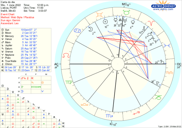 No final desta semana, quando Mercúrio entrar directo, será Saturno que fica retrógrado até meados de Outubro. Plutão em Capricórnio que Saturno rege já está retrógrado desde finais de Abril. Isto diz-nos que esta primeira semana de Junho, com a Lua Nova em Gémeos em sextil a Júpiter e Marte conjuntos em Carneiro, nos permite expressar o que desejamos para o futuro mas que vamos ter de ter muita perseverança e paciência para o alcançarmos—— já que até do final do ano, na Lua Nova de Sagitário – e do princípio do próximo ano quando os retrógrados voltarem as posições que ocupavam antes de ficar retrógrados,- é apenas tempo para repisarmos as questões, insistir no que julgarmos justo e deixar para trás o que não tem futuro. Isto tanto se aplica a cada um como indivíduo -nas suas prioridades, valores e organização de vida , como à forma como estamos organizados em sociedade e às regras a que obedecemos. É preciso por isso ter atenção ao que se deseja porque o esforço será longo e sério para o alcançar.