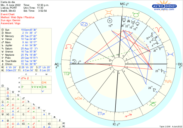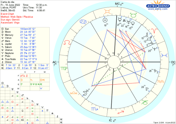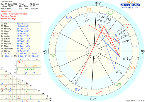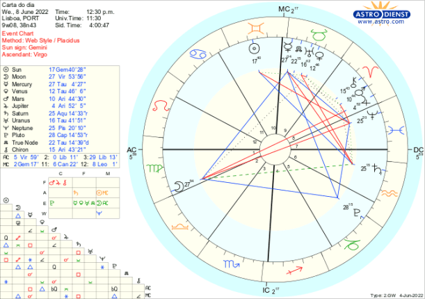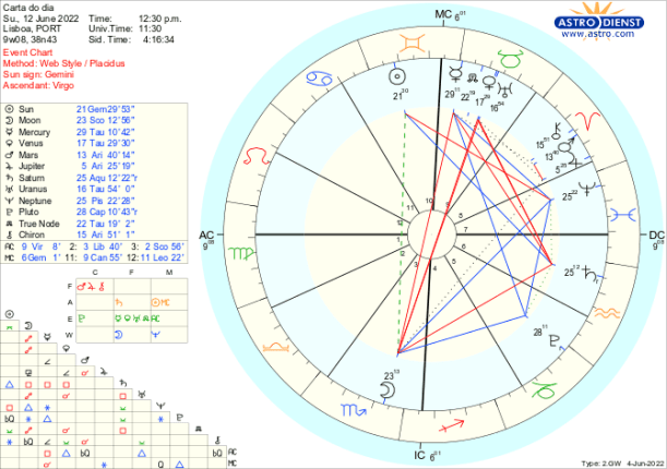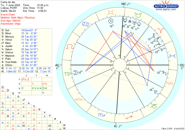 É óbvio que se é preciso rever assuntos, pisar onde doeu, olhar com clareza para o que preferimos ver cor-de-rosa, este tempo pode parecer infernal mas não tem de ser assim- fazer desde já um plano e ter a flexibilidade para o ir ajustando ás conquistas e novos desafios do processo, pode dar a confiança, segurança e propósito que são necessários. Para ajudar temos Mercúrio directo em Gémeos a encorajar alguns contactos antes de entrar em Touro para a semana -quando a lógica passar a ser aplicada à matéria. Assim, usemos Mercúrio esta semana para recolher e trocar informações, ver opções e fazê-lo nessa perspectiva tensa de revisão da matéria, que a quadratura a Saturno retrógrado sugere. Estas conversações e avaliações de possibilidades serão construtivas porque o Sol em Gémeos -que Mercúrio rege -está a caminho de um trígono exacto a Saturno também na próxima semana. Ambos farão esta quarta ao fim da tarde, quinta e sexta, um grande trígono com a Lua em Balança e é possível sentir a energia a fluir de forma positiva desde que…. haja abertura à mudança. Este facto é essencial para conseguir os equilibrios que a Lua em Balança pede. Acontece que Venus que rege a Balança e que se encontra em trânsito em Touro, aproxima-se desde segunda-feira 4 até ao final da semana, de uma desafiante conjunção a Urano.