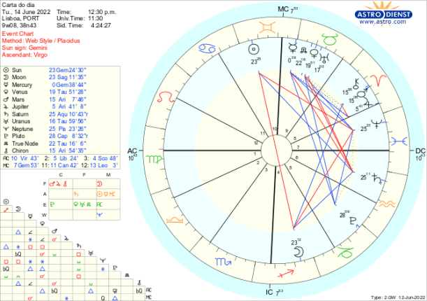 É uma semana em que o que está em causa pode ser relacionado com a Lua Cheia de Dezembro a 27 graus de Gémeos em que o Sol estava a 27 de Sagitário, na véspera de Vénus entrar retrógrada conjunta a Plutão. Será no próximo dia 22 que Vénus fará quadratura a Plutão o que significa que é neste tempo entre a Lua Cheia de terça feira e a Lua Nova no dia 29 que faremos a avaliação do que foi investido emocional, financeira e bélicamente desde então.