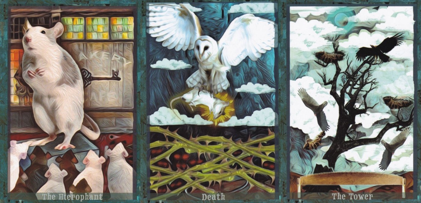 O problema estará em como ordenar a intervenção destas três forças, que tanto se podem complementar como quase anular umas às outras. Primeiro, pela ordem de entrada em cena: estar com o Hierofante desde o início, ou recorrer a ele depois da acção combinada da Torre Fulminada e da Morte, não é a mesma coisa.