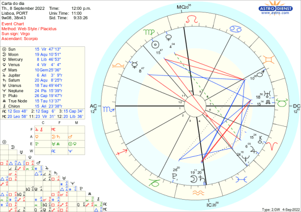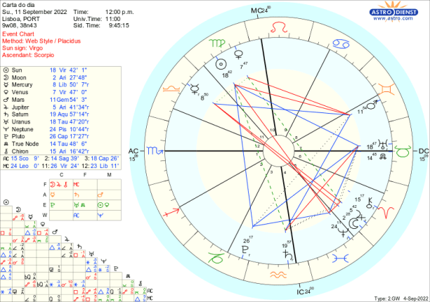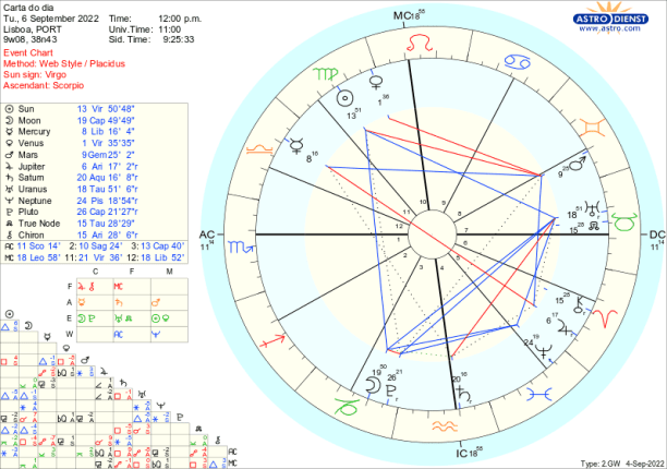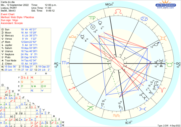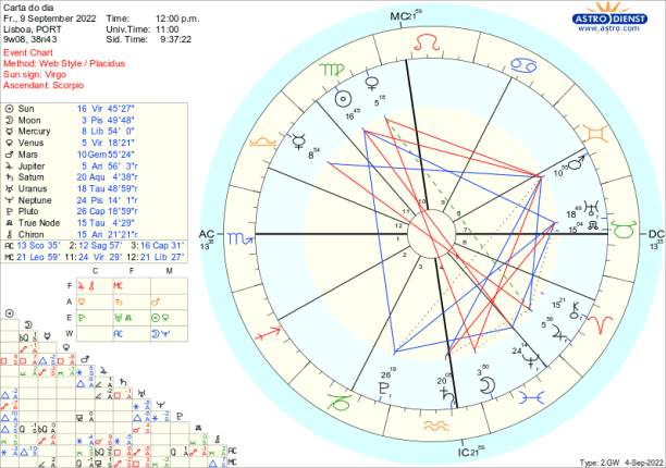 Temos de nos despachar esta semana a definir acordos, estabelecer contratos, acertar o que é justo ou não nas relações e nas contas. No domingo 10 Mercúrio em Balança entra retrógrado – voltando à Virgem a 24 de Setembro e recuando neste signo até 2 de Outubro enquanto Vénus, regente da Balança, está desde esta segunda feira, em trânsito na Virgem que é o domicilio de Mercúrio. Esta recepção mútua com a presença do Sol também em Virgem é um sinal claro de que na mesa de quaisquer negociações, a atenção ao detalhe é a chave do processo mas que este será longo já que Mercúrio só voltará ao grau 8 da Balança em que entra esta semana retrógrado, a 17 de Outubro próximo.