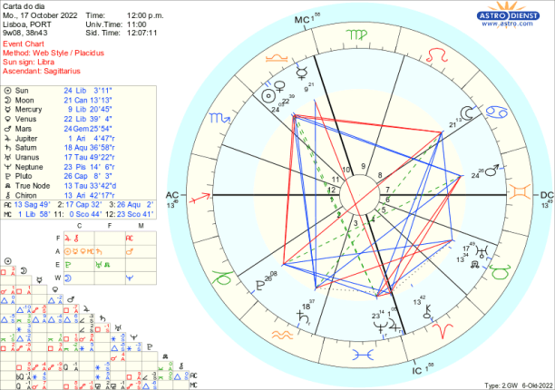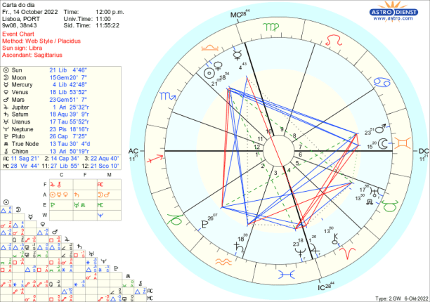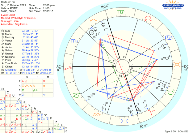 É uma semana em que sentimos que não temos individualmente, a sós, grandes garantias e na qual o que nos segura são as estruturas em que estamos inseridos e as relações com os outros. Tudo isto porque a Lua, cheia no Domingo em Carneiro oposta ao Sol em Balança e quadrada a Plutão na segunda, nos impele à acção radical, por si mas chocamos com a necessidade de entrar em diálogo e acordo com os outros, procurar equilibrios e por isso ter de dobrar a vontade. Terça e quarta, a Lua em Touro que só por si apenas nos levaria a apreciar o que é bom e seguro, é abalada nesse desejo de materialidade ou garantias por uma quadratura a Saturno em Aquário, uma conjunção a Urano e ao Nódulo Norte. Ou seja a Lua ao activar a tensão entre o planeta das restrições, regras, limites sociais e o da inovação, liberdade ou infinitas possibilidades, coloca as nossas emoções, o feminino, no coração desse conflito de interesses- dia certamente importante para o desenrolar da historia da contestação das mulheres no Irão. Individualmente será a certeza de que há revoluções a fazer na nossa leitura do que é importante ou válido, mesmo que isso implique, temporariamente uma situação de menos em vez de mais. Mas como nesta fase dos Ceus, com Mercúrio, Venus e Sol em Balança, nada se pode fazer sozinho e procurar acordos mesmo que pareçam impossíveis é o recomendado, quinta, sexta e sábado de manhã, a Lua em Gémeos em trígono aos planetas em Balança e a Saturno em Aquário, pede que analisemos os dados, demos as voltas necessárias para ter mais informação e capacidade negocial, dentro dos limites impostos. Com flexibilidade, tudo isto é facilitado por um grande trígono de ar entre a Lua conjunta a Marte em Gémeos, em aspecto fluido ao Sol e Vénus no signo da harmonia e a Saturno no signo do interesse colectivo. No entanto, depois da conjunção a Urano da véspera, temos de estar conscientes de que não se está no debate para que fique tudo na mesma, aliás Plutão entrou directo na Lua Cheia de domingo 9 e os cenários de mudança começam a rolar. A Lua Nova e eclipse do Sol conjunto a Venus em Escorpião no próximo dia 25 será a próxima etapa a ultrapassar.