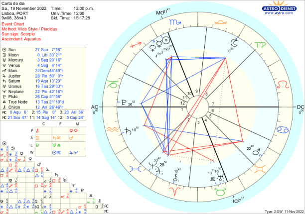 Sábado e domingo são uma delícia para as relações. A Lua em Balança faz uma série de bons aspectos que prometem prazer, harmonia, estabilidade apenas quebradas na segunda feira 21 quando a Lua fizer quadratura a Plutão antes de entrar em Escorpião, a caminho de se unir ao Sol a 1 grau de Sagitário na quarta feira 23.