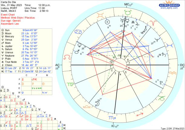Quanto melhor resolvermos essas tensões da Lua Cheia melhor vamos viver o ingresso de Vénus em Leão, no inicio da próxima semana, depois de se opor a Plutão que, dia 11, retrógrado, regressa ao Capricórnio. Vénus em Leão dá-nos a satisfação da criatividade e do amor-próprio, traz a generosidade, a lealdade e a confiança. Também pode dar para o exagero mas de preferência vai permitir o entusiasmo necessário a cumprir a agenda de Plutão porque Vénus vai ficar em Leão de 5 de Junho a 8 de Outubro e Plutão -agora retrógrado – fica directo a 10 de Outubro!!! E que agenda é essa a de Plutão retrógrado em Capricórnio? Temos de ver que ao ter entrado em Aquário pela primeira vez em Março passado, Plutão trouxe para o colectivo a possibilidade de uma verdadeira revolução inovadora nas bases da sociedade, seja pela tecnologia- por exemplo o salto nas possibilidades e impactos globais da inteligência artificial – seja pelo impulso na aspiração à “liberdade, igualdade e fraternidade” que são características do Aquário. Ao entrar retrógrado e ao voltar a Capricórnio – mostra-nos que há estruturas de poder que ainda não caíram ou foram reformuladas, para que esse desígnio se cumpra. Temos assim até Outubro, com Plutão retrogrado um tempo de desfio pessoal colectivo para ir ao fundo do que falta transformar antes de seguir em frente para um novo paradigma individual e de sociedade no que respeita a poder, hierarquias e fundamentação dos propósitos a longo prazo. Saturno que rege o Capricórnio -e agora em trânsito em Peixes nos torna responsáveis pela fé ou fantasia que nos orientar nesse propósito, – também vai estar retrógrado de 17 de Junho a 4 de Novembro para vermos como tornamos os sonhos realidade ajudados pela retrogradação de Neptuno, de 30 de Junho a 6 de Dezembro.