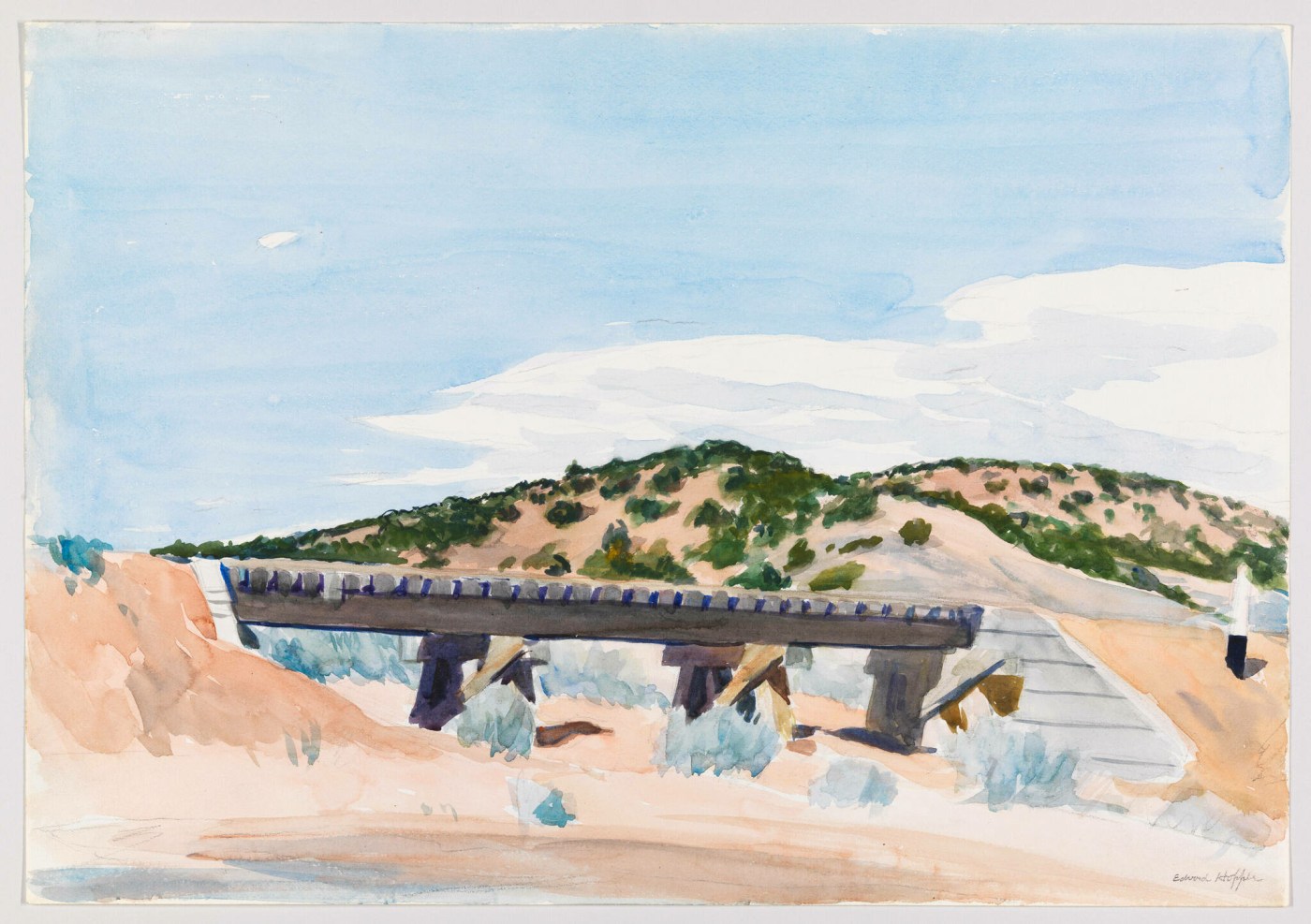 Quadro de Edward Hopper, 1925, Railroad Trestle in the Desert, Whitney Museum USA