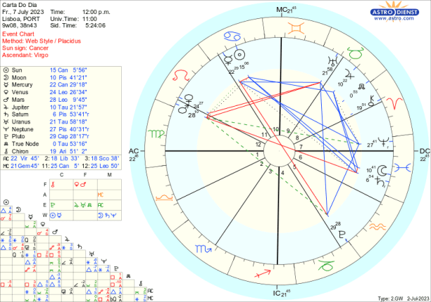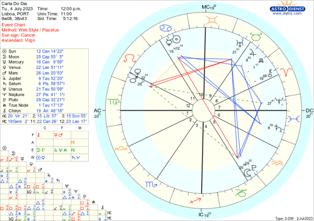 O mês de Julho começa com um climax- uma Lua cheia em Capricórnio na segunda feira dia 3 faz-nos sentir que chegamos a um limite, a um extremar de situações cuja falta de estrutura, de segurança de previsibilidade e ordem nos podem dar alguma ansiedade. As coisas têm de mudar e as respostas podem ser criativas ou abruptas dada a conjunção de Vénus e Marte em Leão, quadrados a Urano em Touro mas temos sempre de contar com surpresas, chegadas ou partidas em que a casa, família, nação são o foco. E é importante falar. Falar do que se sente, do que se precisa, daquilo de que temos memórias antigas- diz-nos Mercúrio em Caranguejo conjunto ao Sol na Lua Cheia.