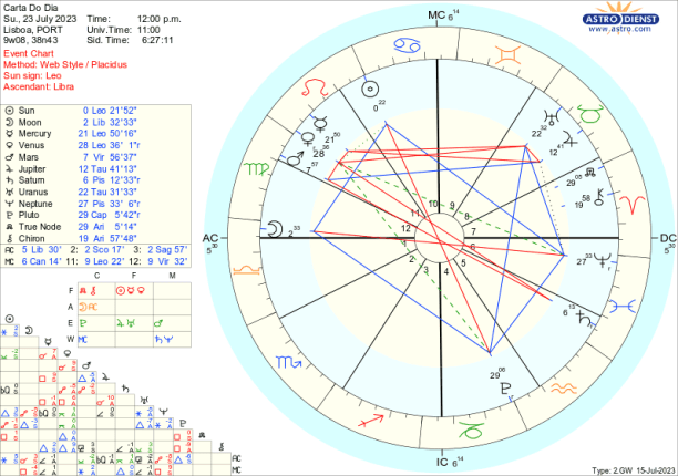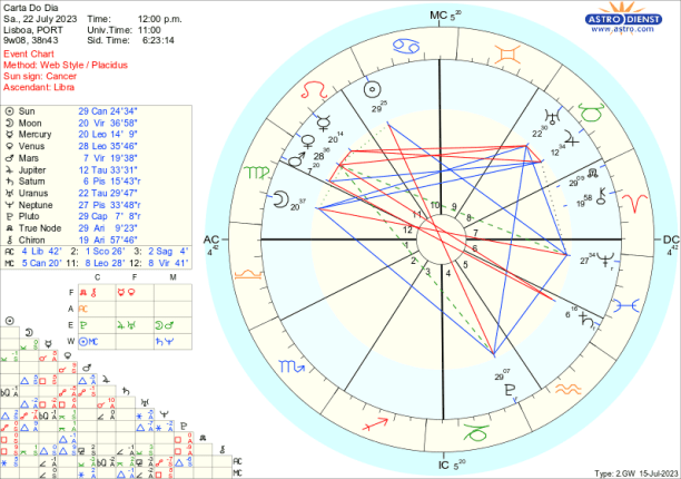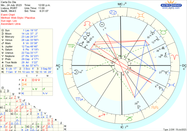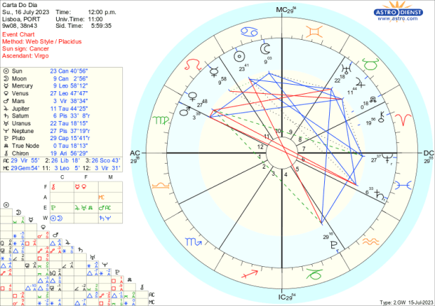 Marte como se viu é o terceiro ponto fulcral da semana porque rege o Nódulo Norte agora em Carneiro e porque, como está em trânsito em Virgem, oposto a Saturno e quase a receber uma conjunção de Vénus, nos diz que temos de agir minuciosamente, com atenção a todos os detalhes de serviço, sem deixar passar nada que não seja relevante para a lógica criativa que esta mudança de tempos nos pede, porque Mercúrio que rege a Virgem está em trânsito em Leão. Vamos operar em pormenor e clamar vitória pessoal por cada passo bem dado, que nos encha de segurança sob novos moldes, ilustrado pelo trígono que se aproxima de Marte a Júpiter em Touro com base na Lua Nova de Caranguejo, sextil a Urano em Touro.