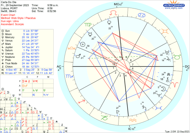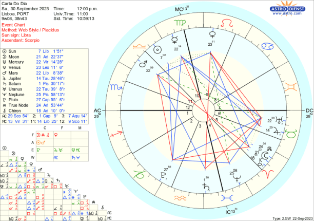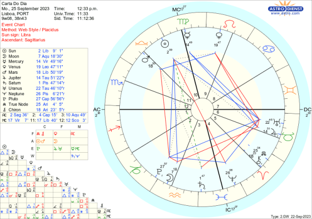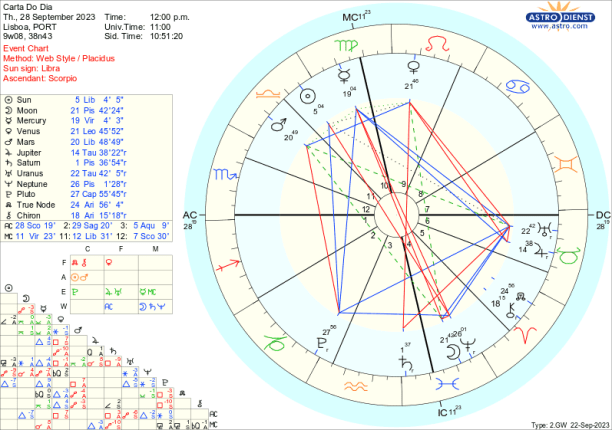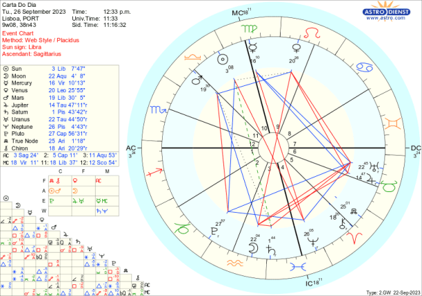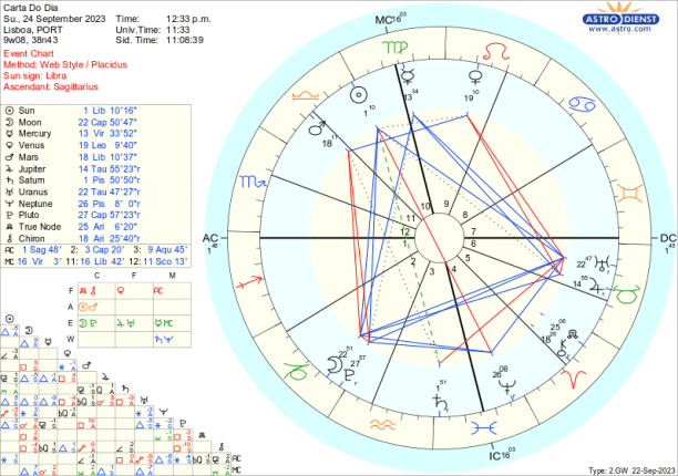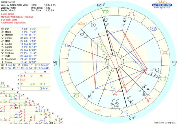 Assim, nesta última semana de Setembro, semana de Lua Cheia na sexta feira 29 em que o Sol em Balança procura equilíbrios e a Lua em Carneiro anseia por acção espontânea, sem consideração pelas exigências alheias, vamos permanentemente oscilar entre o seguro ou aparentemente correcto e perspectivas diferentes, novos valores livres de ónus, encargos e condicionantes do passado. Não estamos a resolver nada de novo. Estamos apenas a lidar com questões pendentes dos últimos meses que se não forem resolvidas não permitem progresso futuro. Saturno, Júpiter, Urano, Neptuno e Plutão estão todos retrógrados o que, por estarem tão próximos da Terra, nos confrontam exactamente com essas matérias que falta resolver. A lição da semana passa por ajustarmos as nossas exigências às necessidades dos outros através da busca de terceiras vias, inteligentes, diferentes, criativas que sirvam tanto o nosso propósito como o do outro como o do colectivo em geral. Urano co-rege o Aquário para onde avançará Plutão e estamos já a dar o nosso pequeno contributo para o que possa ser um mundo melhor, mais inclusivo. Ou não…