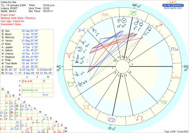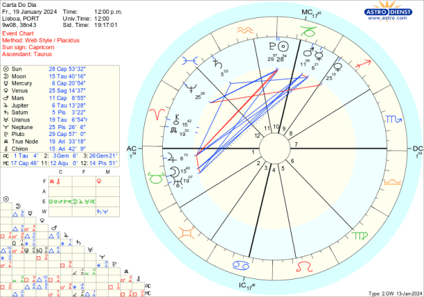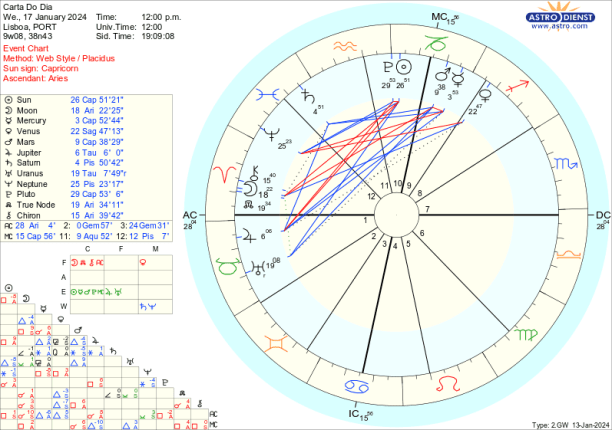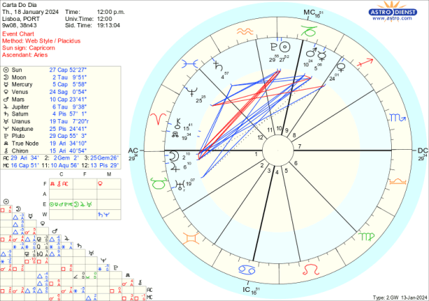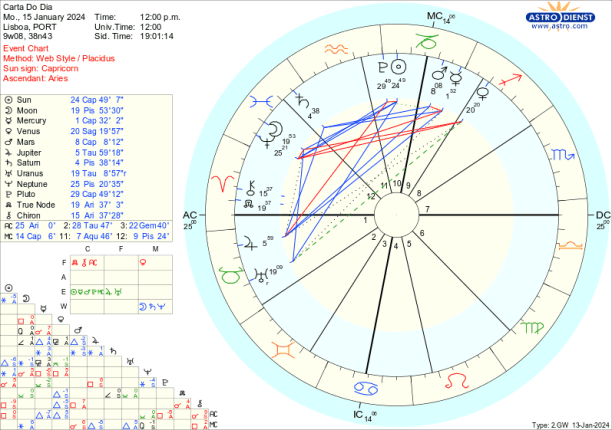 Esta baralhação é ainda mais premente dos dois dias- 20 e 21 – da conjunção entre o Sol e Plutão, primeiro em Capricórnio e de seguida em Aquário. Porquê? Porque nesses dias em que os astros prometem transformação na ordem dos poderes ou da ordem existentes, as percepções sobre o que isso significa estão não só alteradas por essa quadratura entre Vénus e Neptuno como a Lua, símbolo das nossas emoções ou sentir se encontra no signo dual de Gémeos, em oposição a Vénus e em quadratura a Neptuno…que forças, que conceitos?