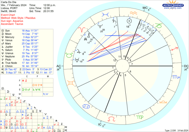 Mais uma semana intensa de surpresas e desenvolvimentos, no mês que dá o mote ao correr do ano! O pano de fundo é colorido por Plutão, acabado de entrar em Aquário, cenário que se vai prolongar por vários anos e que obriga à revisão e transformação da ordem social, da forma como estamos representados no e pelo colectivo, por via de revoluções tecnológicas e financeiras. Podemos gostar ou não gostar mas não parece haver travão. Desde que em Janeiro o Sol e Plutão sairam juntos de Capricórnio e entraram juntos em Aquário, muitas são as novidades como chips implantados no cérebro que permitem “telepatia” com aparelhos, automóveis voadores, mantas de 5G sobre todas as cidades do mundo, a fusão da blockchain- tecnologia de cadeia de blocos com sistemas descentralizados e a Inteligência Artificial …uma aceleração imensa da revolução digital que se segue à revolução industrial da última vez que Plutão esteve em Aquário…no final do século 18, tempo também das revoluções americanas e francesas.