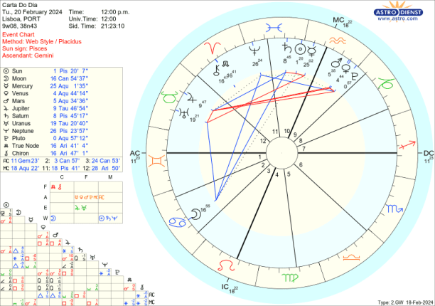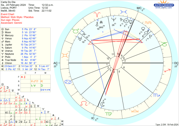 Interpretar esta Lua Cheia implica recuarmos à Lua Nova em Aquário no dia 9 de Fevereiro, que teve lugar em quadratura a Urano em Touro. O vulcão na Islândia voltou a lançar lava mas também nas nossas vidas, tivemos de equacionar como nos integramos no colectivo e que novas ideias ou valores nos obrigam a ajustamentos. Depois, no sábado e domingo 17 e 18, Vénus fez conjunção a Plutão, na senda de Mercúrio dia 5 e Marte dia 13. Com Plutão, Vénus, Marte e Mercúrio em Aquário todo ao longo desta semana, continua a ser para a sociedade, para o mundo, para os grupos em que estamos inseridos, que olhamos com o propósito de que algo mude para melhor, que haja inovação, revolução, capacidade para agir em defesa do bem comum. A Lua Cheia de sábado 24 vai chamar-nos a atenção para o lado prático da concretização dos nossos ideais, já que desde segunda 19 o Sol já vai estar em Peixes, em órbita de conjunção a Saturno.