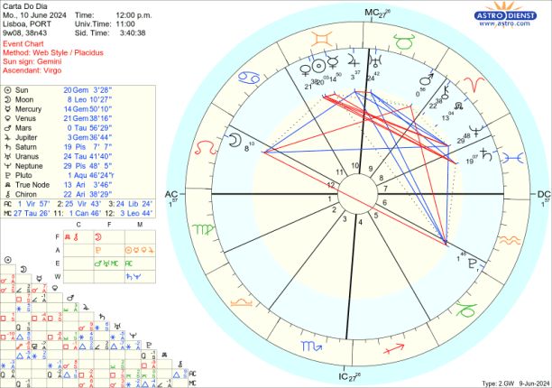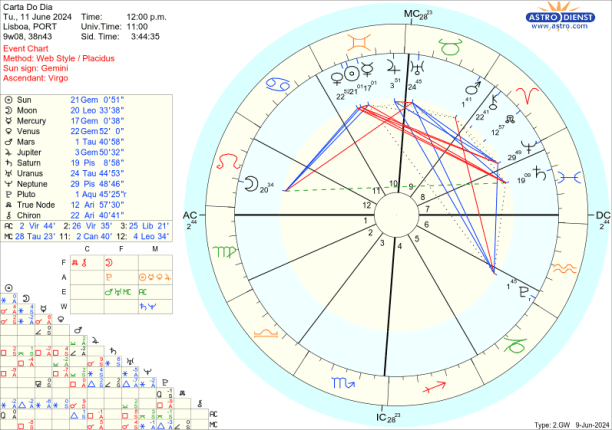 - Na terça dia 11, no quadro da grande tensão de conquista de resultados entre Marte e Plutão, temos de estar prontos para surpresas e para adoptar novas atitudes ou valores, com uma quadratura da Lua em Leão a Urano em Touro que nos pede menos dramatismo e mais abertura com sextis aos planetas em Gémeos.
