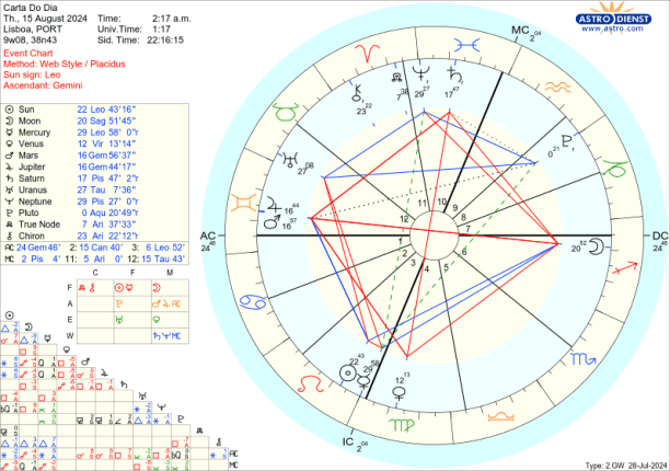 Como pano de fundo do mês de Agosto temos Plutão retrógrado em Aquário Neptuno retrógrado e Saturno retrógrado em Peixes. Ou seja, nada é ainda claro: estamos como colectivo a repensar a ideologia e a direção em que o mundo deve ir nos próximos anos e individualmente o espírito que nos deve animar a participar em sociedade, no grupo.