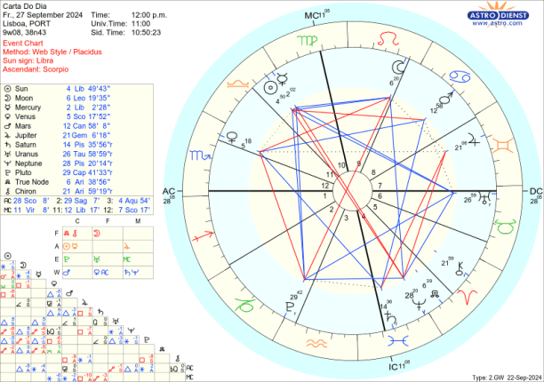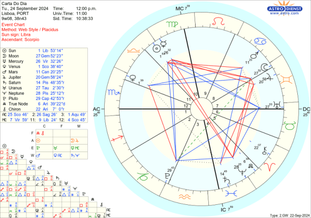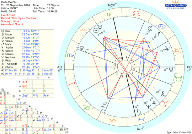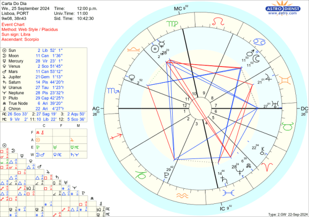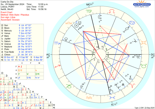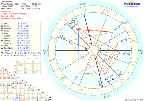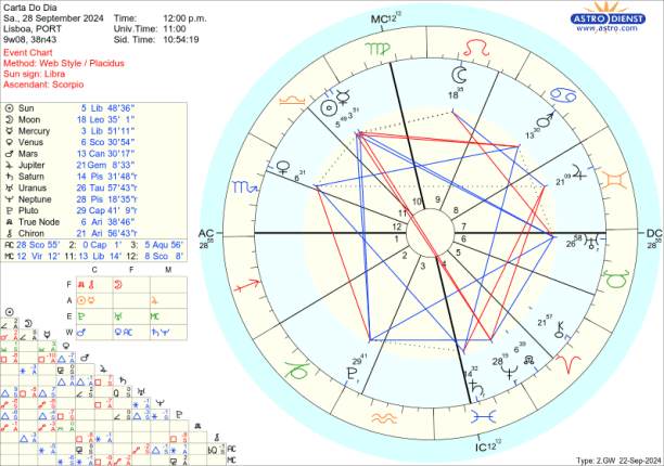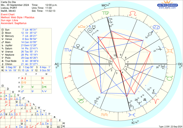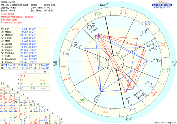Com o ingresso do Sol na constelação de Ar da Balança desejamos o equilíbrio em falta das relações, a paz que não se consegue, a igualdade entre opostos. Mas o Nódulo Lunar está em Carneiro, signo de Fogo, de iniciativa individual, do Eu que se sobrepõe ao Nós, dos interesses pessoais que ignoram os interesses alheios. Tudo isto se joga na relação entre Vénus regente da Balança e Marte regente de Carneiro.