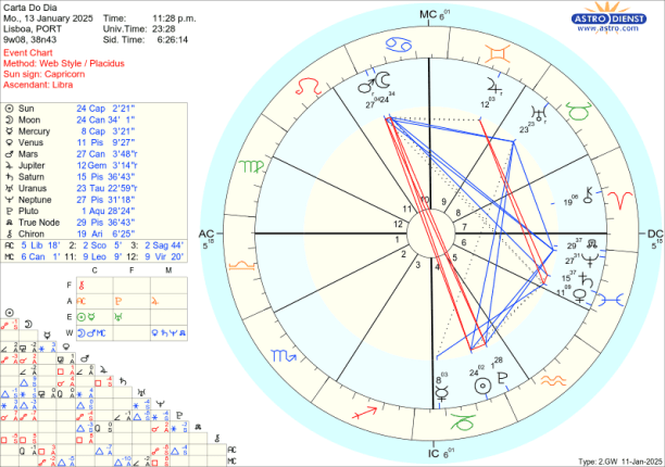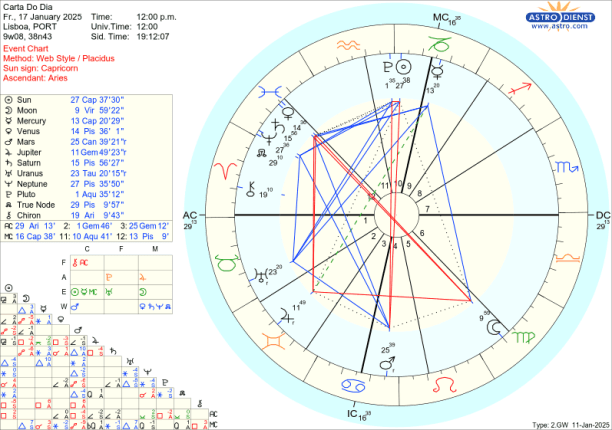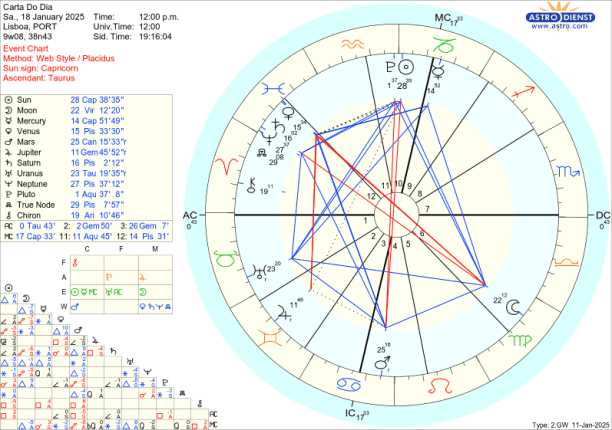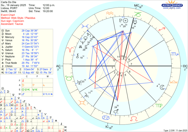 Para já, e nessa senda, sob Céus pesados, temos na segunda feira dia 20, – dia da conjunção a Plutão do Sol recém entrado em Aquário, ainda opostos a Marte e com a Lua em quadratura, – a tomada de posse de Trump como presidente dos EUA…