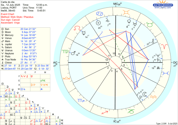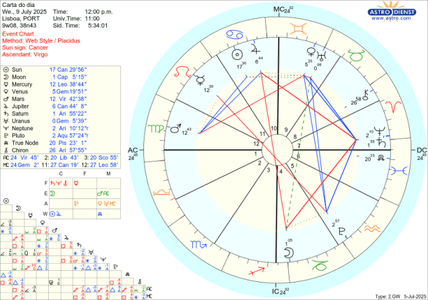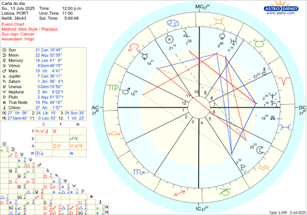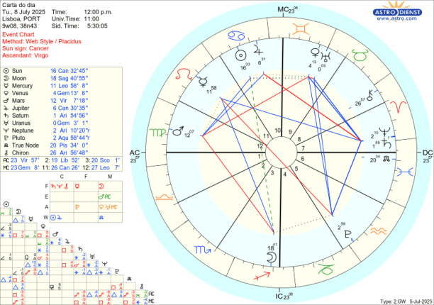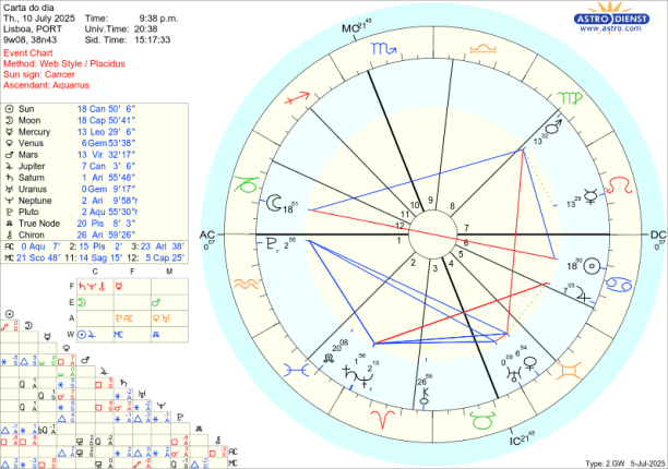 Se o mundo está a atravessar uma ponte entre uma organização política, social, tecnológica passada e o que será a futura, também nós, nos nossos mapas pessoais, estamos a viver essa mudança, em particular se tivermos planetas ou ângulos entre os 0 e os 5 graus de Carneiro, Balança, Capricórnio ou Caranguejo, Gémeos ou Sagitário ou Aquário, Escorpião, Leão ou Touro… um largo espectro porque os planetas lentos que fazem as transformações de fundo, estão todos eles nesses graus em aspecto ao resto do zodíaco. É preciso ver as casas em que estão para melhor percebermos o impacto.