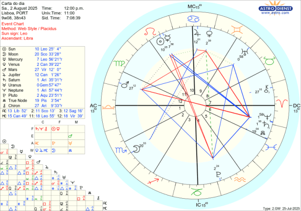 Também esta semana temos um momento importante para fomentar uma capacidade de expressão adequada à afirmação que se deseja do nosso sentido de identidade . É na sexta feira dia 1 que Mercúrio retrógrado faz conjunção ao Sol em Leão. Mercúrio é “queimado” pelos raios do Sol e tudo o que estávamos a rever – e sobre o que tínhamos dúvidas se nos era adequado – fica como que purgado com este aspecto e o caminho fica aberto para toda uma nova força de expressão a partir de dia 12, dia em que Mercúrio fica directo a 4 graus de Leão, o que nos permite afirmar o que semeamos na Lua Nova de 24 de Julho, a 2 graus de Leão. Sempre que Mercúrio faz conjunção ao Sol os diálogos intensificam e a subjectividade é algo que é preciso controlar dado que isto se passa no Leão. Como esta conjunção acontece em quadratura à Lua em Escorpião, corremos o risco de querer controlar tudo e não conseguir controlar nada. Como Vénus entrou em Caranguejo na véspera, dia 31, o mais provável é que sejam os assuntos domésticos, de casa, família, tribo ou nação que estejam no cerne dos intensos diálogos e do desejo de protecção do que consideramos como nosso ou essencial à nossa segurança. O trígono que Vénus faz dia 31 e 1 à Lua em Escorpião traz uma capacidade enorme de ligação intuitiva, empática, emocional mas a quadratura de Vénus a Saturno e a Neptuno em Carneiro, não permite devaneios e temos de nos restringir a dar o nosso melhor dadas as circunstâncias, respeitando quem somos mas sem esperar bonús. O importante é aproveitar Mercúrio conjunto ao Sol para renovar o diálogo.