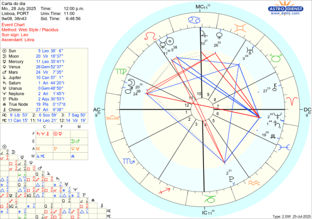 Por isso, nesta semana- que é a do quarto crescente, – com a Lua a passar segunda e metade de terça por Virgem, a tarde de terça, quarta e parte de quinta por Balança, sexta e sábado por Escorpião e domingo à tarde a chegar a Sagitário, é tempo de revermos, nessa sequência de dias e signos, os detalhes, os equilibrios e o controlo das posições que temos de assumir neste processo lunar que especificamente nos exige assumir a nossa identidade mesmo que isso traga dúvidas, tenha custos ou obrigue a ajustamentos.