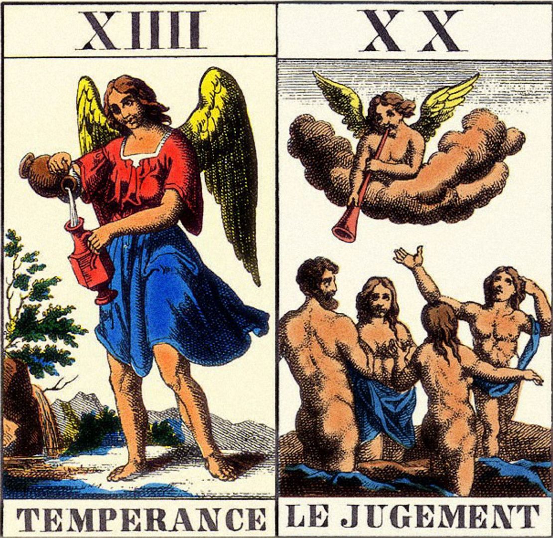 Na semana que passou tivemos já a inspiração da Temperança, numa companhia mais pessoal, orientada para nós e os nossos mais próximos, com a doce e maternal Imperatriz, arcano 3. Agora, com o Julgamento, numerado a 20 e o penúltimo dos Arcanos Maiores, subimos para um patamar mais abrangente e globalizante. É como se se nos eleve a tomada de consciência sobra a situação em que nos encontramos e seja possível ter uma visão ampla do passado recente, perspectivada para o perdão pelas falhas e a ultrapassagem dos problemas relevantes. Seremos capazes de o fazer, inspirados pelo Julgamento, usando a estratégia da Temperança: através da análise, desconstrução e recombinação dos factores problemáticos que se nos têm apresentado.