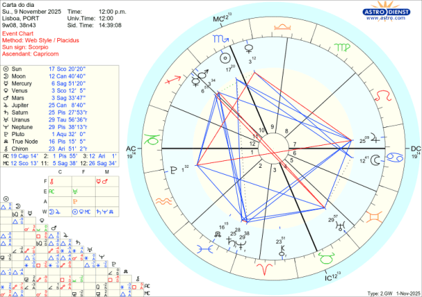 Temos assim uma semana a dois tempos. De segunda a quarta estamos ainda a trabalhar para que pretendemos que aconteça se torne palpável, implique uma mudança na situação financeira, doméstica ou de transformação familiar. Depois de quarta – e até à Lua Nova em Escorpião no próximo dia 20, – já estaremos a disseminar ou divulgar ou distribuir ou partilhar ou ensinar o que produzimos, a refletir sobre o capítulo seguinte e a prepararmo-nos para abrir mão do que já não fará sentido, depois desta fase.