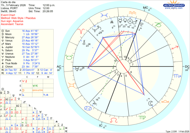 Fevereiro começou, domingo, com uma Lua Cheia que em casa, entre amigos ou em sociedade lançou sementes de conflito entre egos pessoais e interesses colectivos: eu versus os outros ou como é que o Fogo individual alimenta as redes em que se está inserido. Esta Lua Cheia em Leão, oposta ao Sol em Aquário, é um apelo a uma manifestação apaixonada de como queremos ser representados em sociedade. E é esse tema que vai estar subjacente aos desenvolvimentos individuais e mundanos, até ao eclipse do Sol na Lua Nova de Aquário, do próximo dia 17. Aí, vamos perceber que estamos todos no mesmo barco e que há que encontrar novos rumos, eliminando valores -ou quem os representa – que já não servem para o novo mundo que queremos, em plena consciência, desenhar.