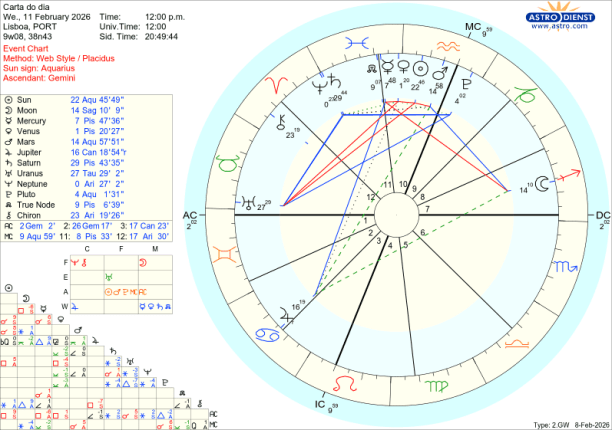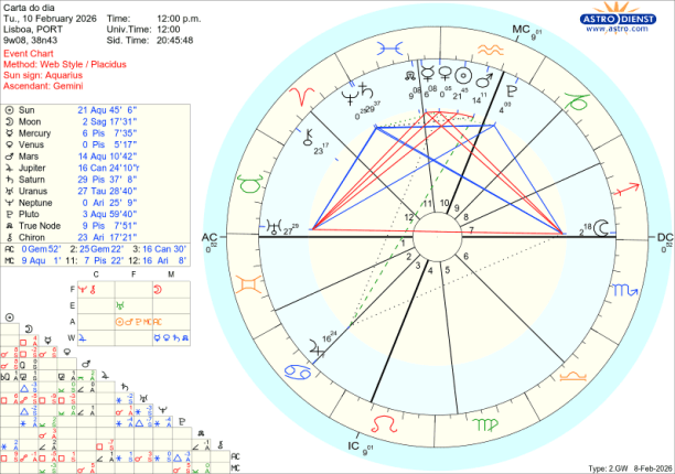 A instabilidade nas relações pessoais, diplomáticas e dos mercados financeiros do final da semana prolonga-se pela segunda feira 9 de Fevereiro, numa contagem decrescente para o eclipse anular do Sol na Lua Nova em Aquário do próximo dia 17. E não pensemos que os assuntos se ficam por aqui… a resposta a este eclipse virá no mês de Agosto no eclipse total do Sol em Leão.