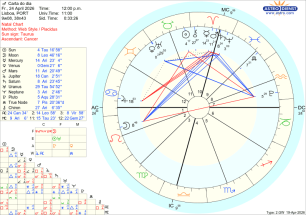 Em primeiro lugar continuamos no coração de um furacão de conflitos dada a grande concentração de planetas em Carneiro, signo da vontade cega, determinação e guerra. Em segundo lugar, e por causa desse clima de instabilidade política global, estamos sujeitos uma tensão maior entre a segurança material, física e as forças de transformação políticas e sociais activas sobre as quais não temos controlo. Por fim, é nas relações que tudo se joga, sejam elas pessoais, diplomáticas ou financeiras, áreas onde temos de estar preparados para um embate transformador. O que tinha um valor, passa a ter outro, mais em acordo com o mundo novo que se está a forjar.